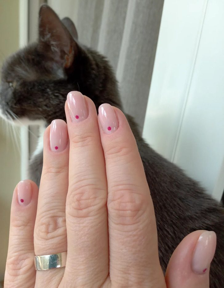 «Я сама делала маникюр на короткие ногти, с точками. Спустя годы практики, я наконец довольна результатом»