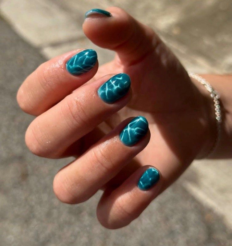 Более темный цвет магнитного лака напоминает глубокие морские воды в ясный день: стеклянную текстуру и объем ему нужно придать при помощи плотного прозрачного верхнего покрытия.