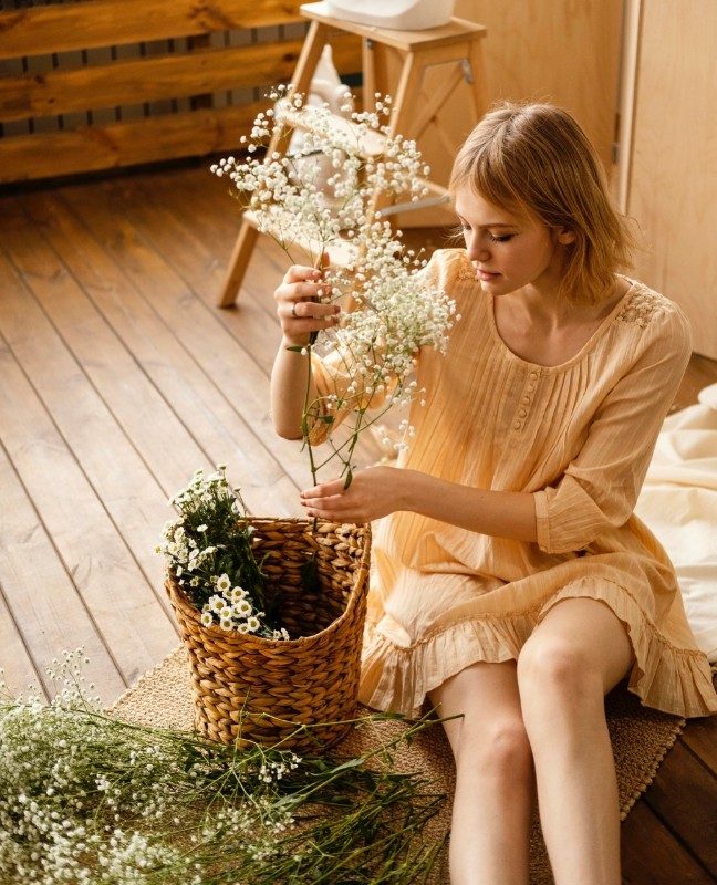 Аксессуары, подчеркивающие естественностьВ деталях кроется истинная магия Cottagecore. Аксессуары играют ключевую роль в создании целостного образа, напоминая о красоте природы. Рекомендуется отдавать предпочтение хэнд-мейд украшениям: деревянные бусы, цветочные повязки на голову, плетеные сумки – все это органично дополняет пасторальную эстетику. И, конечно же, не стоит забывать о соломенной шляпе – этот незаменимый атрибут не только защитит от солнца, но и придаст вашему образу завершенность и утонченность.