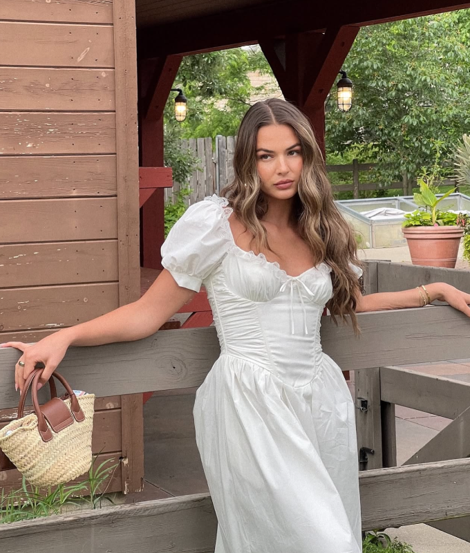 Коттеджкор-девушка идеализирует сельскую жизнь, живет на лоне природы и, конечно, имеет определенный модный стиль. Сердцем Cottagecore являются уютные, женственные образы, вдохновленные сельским бытом прошлых столетий. Просто представьте: легкое платье в пол с пышными рукавами-буфами, украшенное нежным цветочным принтом, в сочетании с соломенной шляпой, защищающей от лучей солнца. Это классический образ, вызывающий ассоциации с безмятежными днями, проведенными на залитом солнцем лугу, вдали от городской суеты.