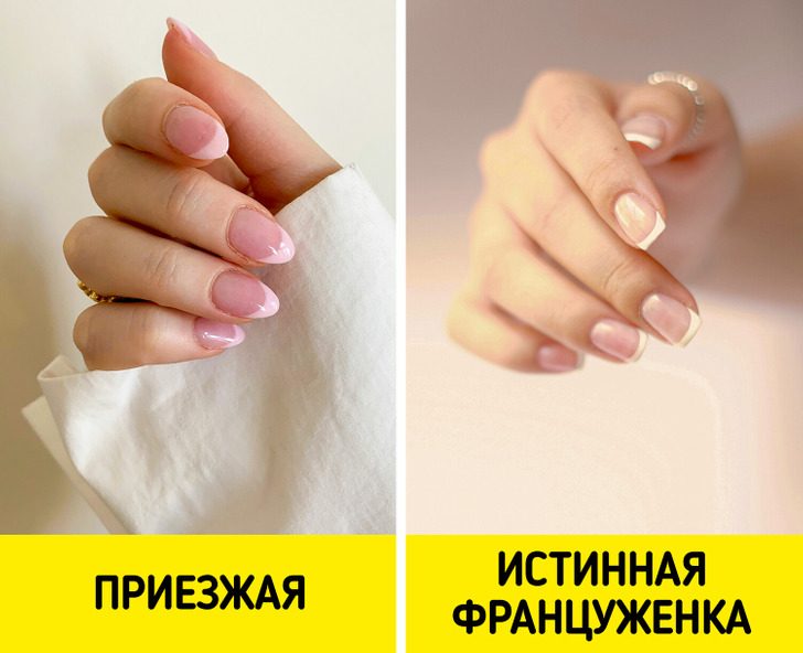 Согласно изданию French Girl Beauty, француженки носят только три вида маникюра: никакого лака вообще, прозрачный лак или однотонное покрытие.