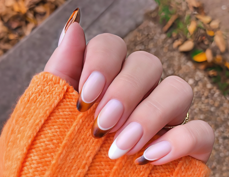 Акварельный черепаховый узор на кончиках ногтей – нежно и очень по-осеннему.