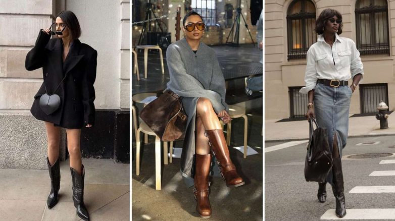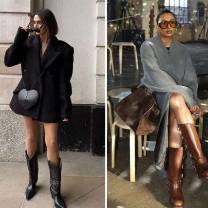 Казаки красиво «съедают» лишний романтизм у летящих платьев и добавляют характер. Выбирайте длину миди, разрез или асимметрию под носок сапога — ноги кажутся стройнее. «Поверх можно надеть кардиган на пуговицах или укороченный жакет: они балансируют объем и подчеркивают талию. Помните, если голенище широкое, показывайте узкую часть ноги: отлично подойдет мини с плотными колготками или юбка с разрезом», — говорит эксперт.