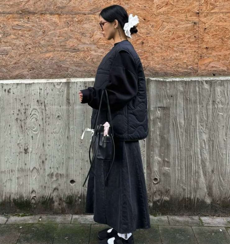 Джапанди любит свободную посадку без лишнего объема и грамотную многослойность. Комбинируйте длинное пальто-халат или кимоно-пальто с мягким кардиганом и прямыми брюками, добавляйте тонкую водолазку под рубашку и жилет-пуховик без лишних строчек. Баланс стройности дают вертикали: V-ворот, запах, запахной пояс, узкая планка, а длина миди у юбок и пальто аккуратно вытягивает силуэт. Следите за пропорцией один свободный элемент к одному более структурному, например объемный свитер и строгие брюки со стрелкой.