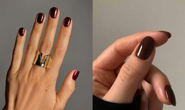 Шоколад этой осенью — глубокий, ровный, без лишних блесток. Выбирайте тон под кожу: теплой подойдут молочный и карамель, холодной — горький шоколад и мокко. Самый «дорогой» финиш — глянец или мягкий сатин, они подчеркивают гладкость пластины и смотрятся аккуратно даже на короткой длине. «Чтобы шоколад не казался слишком тяжелым, добавьте деталь: тонкий молочный микрофренч, узкая вертикальная полоска у бокового валика или полупрозрачная „луночка“ у основания. Перед окрашиванием обязательно выровняйте ноготь базой и запечатайте торец — темные пигменты так дольше держатся и не „съедают“ длину», — говорит мастер.