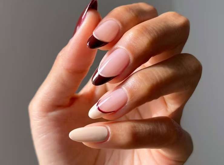Винные оттенки красиво «подсвечивают» кожу в пасмурные дни, но требуют аккуратности. Для офиса берите плотные бордо и марсалу в два тонких слоя с зеркальным топом, а для вечера попробуйте полупрозрачный «желе»-эффект граната: он дает потрясающую глубину. Короткий овал или мягкий квадрат — лучшие формы для винных лаков, они выглядят ухоженно и не удлиняют палец чрезмерно. Если хочется праздника, добавьте одну тонкую золотую линию у основания или крошечную металлическую точку на безымянном — этого достаточно, чтобы оттенок заиграл.