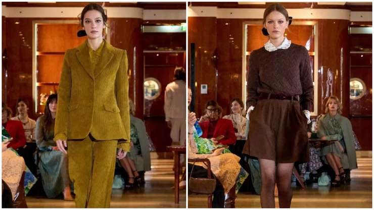 Прекрасная двойка с юбкой от Marc Cain не только отлично впишется в осенние тренды, но и преобразит вас — удивительно комплиментарный оттенок золотистого бежа, который выбран для жакета и юбки, словно подсвечивает кожу. Сочетается такой цвет с черным и серым. Ну а для тех, кому экстремально не хватает тепла, дизайнеры Fforme создали плотный брючный костюм богатого коричневого тона. Здесь ультрамодно все, актуальна буквально каждая деталь — от воротничка-стойки до оверсайз-силуэта.