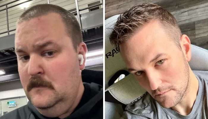 2. «Всё, что потребовалось, — это бросить пить, взвешиваться и отслеживать всё, что я ем, ходить в спортзал 5-6 раз в неделю и еженедельно посещать психотерапевта! Шучу, оно того стоило! Я ещё не закончил, но буду продолжать в том же духе, пока не добьюсь результата!»