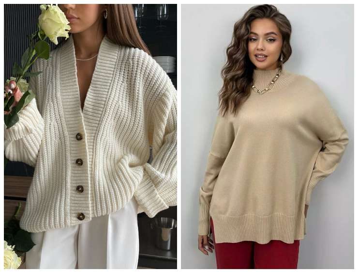 — Кардиган крупной вязки: добавит уюта и тепла в ваш образ. Кардиган можно носить поверх блузы, футболки или платья.