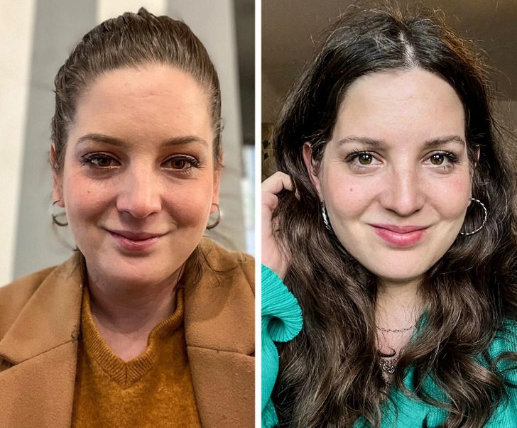 «До и после того, как прошла консультацию по определению цветотипа»
