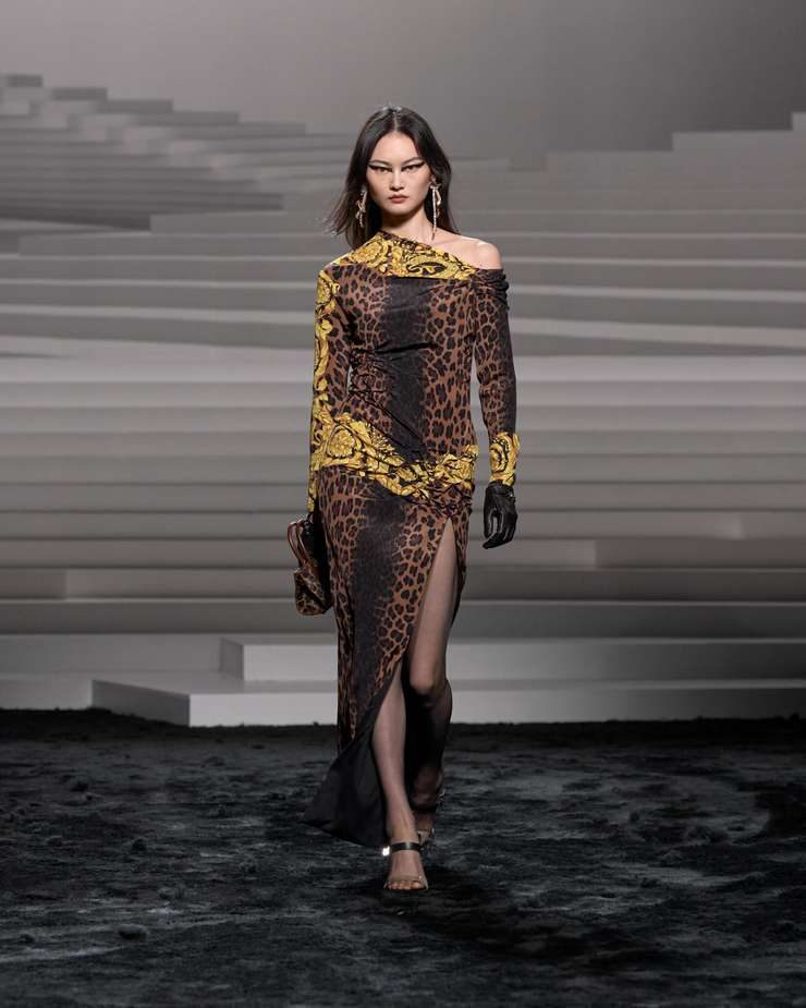 Для выхода в свет леопард можно подавать более смело и гламурно. Дизайнеры предлагают сочетать его с роскошными тканями и сложными фактурами. Например, Dolce&Gabbana SS25 используют пайетки, атлас и шифон — так леопардовый принт играет на контрасте с блестящей тканью и становится по-настоящему неотразим. В Versace же буквально заворачивали свои вечерние платья в шелковый леопардовый принт, а Blumarine FW24 надевали яркие платья с леопардовыми колготками.Советы для вечерних образов: