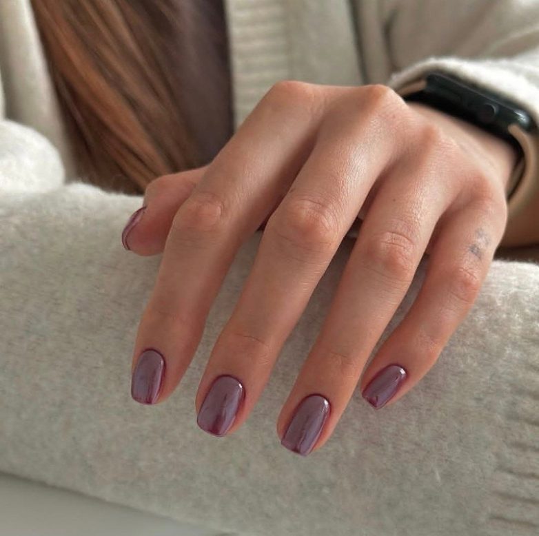 Хромированный бургунди-маникюр – выбор для эстетов, которым надоели обычные однотонные покрытия.