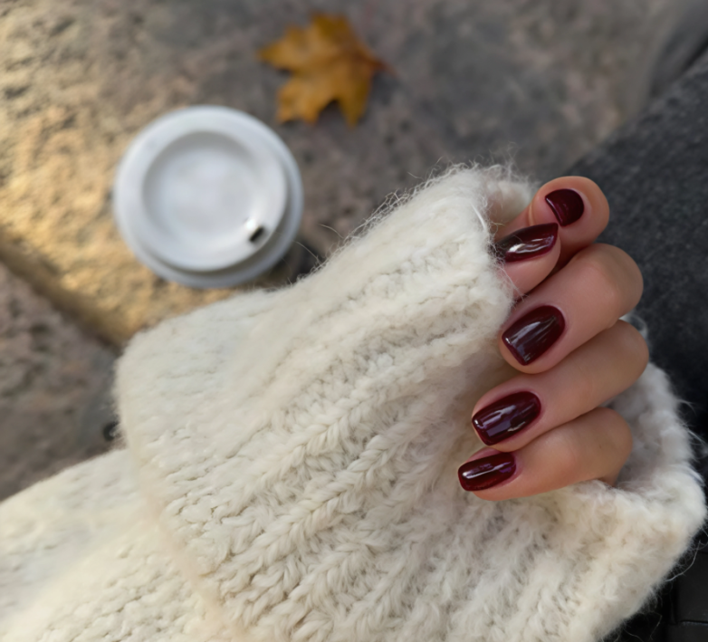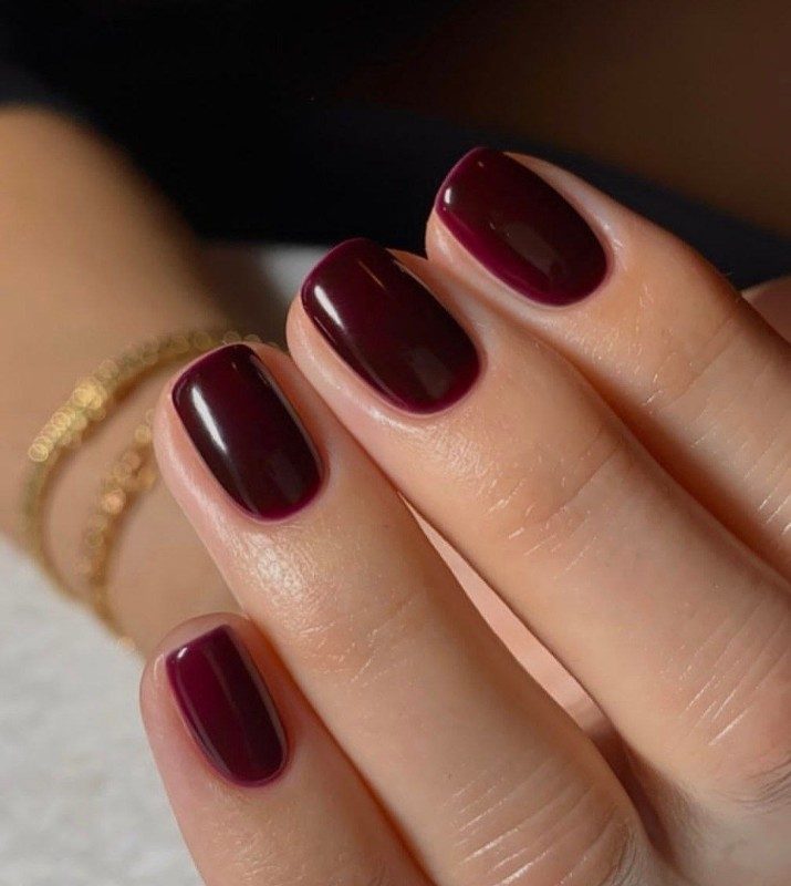 Самый популярный вариант бордового маникюра, который не утрачивает своей актуальности из года в год, – темный цвет выдержанного вина со стеклянной или кремовой текстурой.