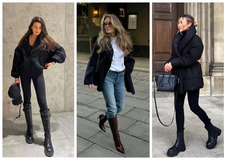 — Играйте с пропорциями: объемный верх (свитер оверсайз) хорошо сочетается с облегающими сапогами.— Создавайте монохромные образы: сапоги в тон одежды — это всегда элегантно и визуально удлиняет ноги.