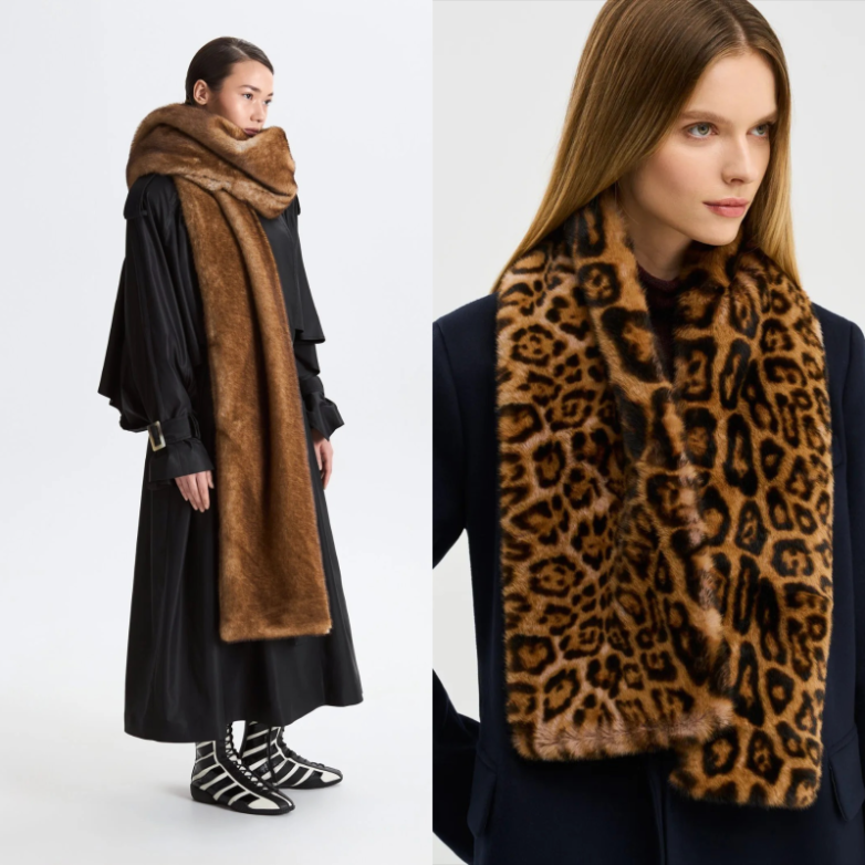 Самым популярным и новаторским в этом году стал меховой шарф. Если в прошлые сезоны упор был на шерстяные и кашемировые изделия, то этой зимой мы увидим совершенно новый продукт – шарфы, целиком выполненные из меха. Особой популярностью пользуются изделия из эко-меха. Их можно отыскать у брендов в разной цветовой палитре: от монохромных коричневых оттенков до экстравагантных леопардовых. Стилизовать такой шарф можно по-разному: повседневно обернуть вокруг шеи или вдохновиться стилистическим лайфхаком фэшн-блогеров – накинуть меховое изделие на одно плечо в духе голливудских звезд 60-х.