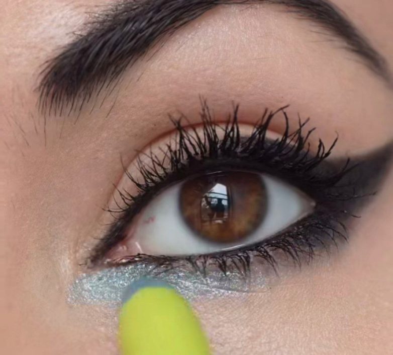 Хорошие новости для тех, кто любит макияж со стрелками: голубые тени идеально подходят для акцента по нижнему ресничному краю, освежают взгляд и при этом не выглядят слишком ярко.