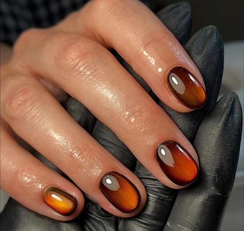 Янтарный маникюр смотрится волшебно, его золотистые переливы согревают даже в самый морозный день.