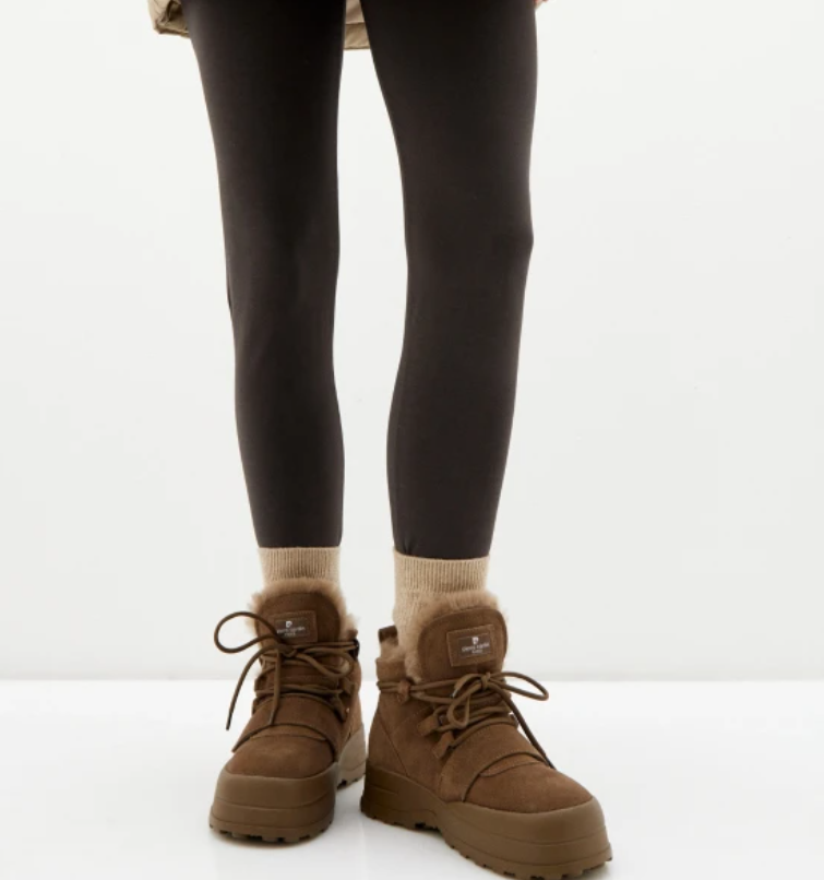 Эта деталь может сделать образ настоящим apres-ski. Moon-boots давно стали городским элементом: они защищают от холода и отвечают на запрос «хочу тепло, но не громоздко». Если нужен более спокойный вариант, подойдут массивные зимние сапоги или дутики.Такая обувь особенно хорошо выглядит с прямыми брюками, утепленными легинсами и вязаным платьем. Важно учитывать пропорции: чуть укороченный низ или плотные однотонные колготки удерживают линию ноги и не дают образу «провалиться».