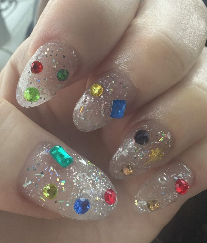 Ловить каждый луч скупого зимнего солнца и превращать его в цветные блики — задача каждой уважающей себя женщины! Шучу. Но это на самом деле очень красиво. А если вы барышня, которая любит привлекать взгляды — выбирайте «битое стекло». Хотя и очевидно слишком вычурные варианты никто не отменял.