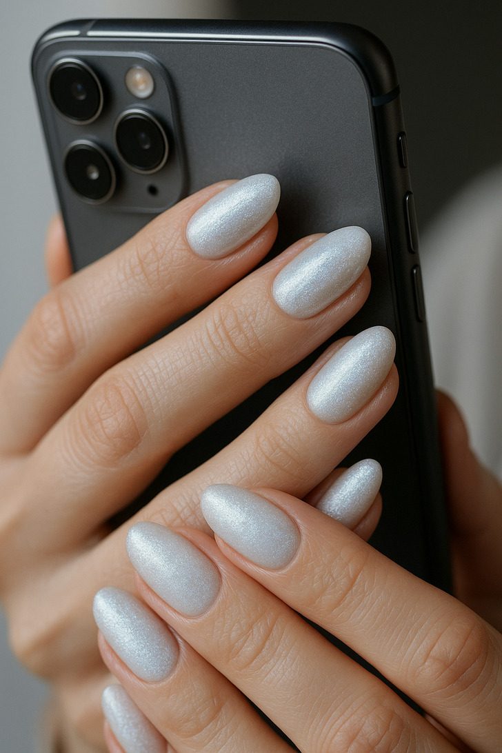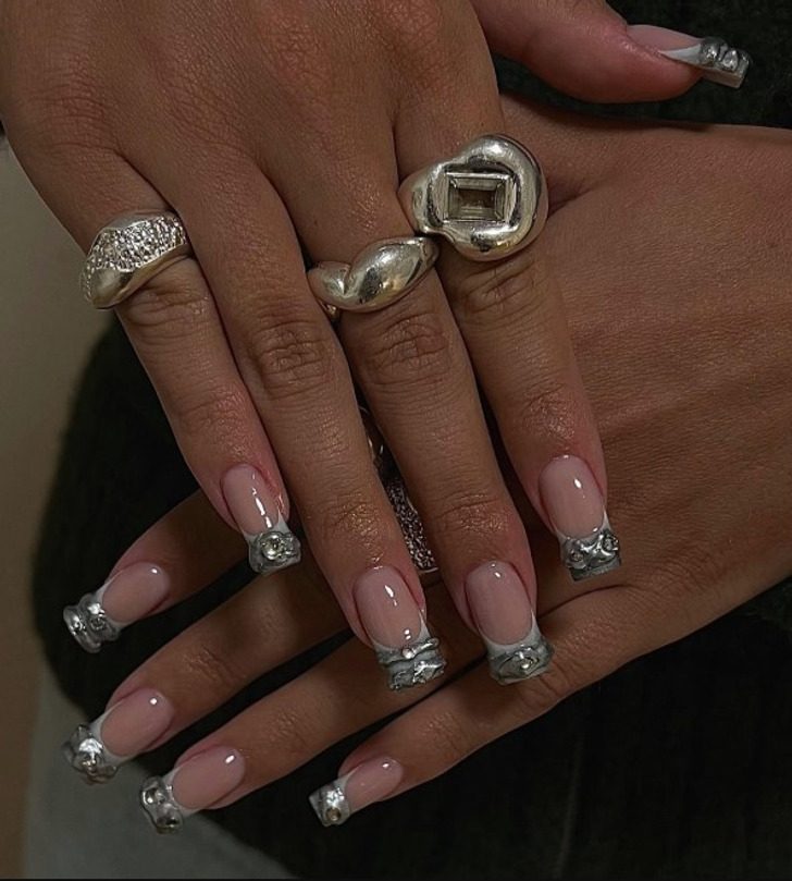 Серебряная хромовая пудра придаст любому дизайну ледяной оттенок, поэтому, нанесенная поверх чистого белого, она превратит классический образ в зимний атрибут.