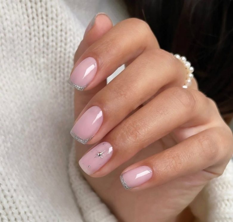 Серебряный лак с мелким или крупным шиммером красиво сияет – словно иней на кончиках ногтей.