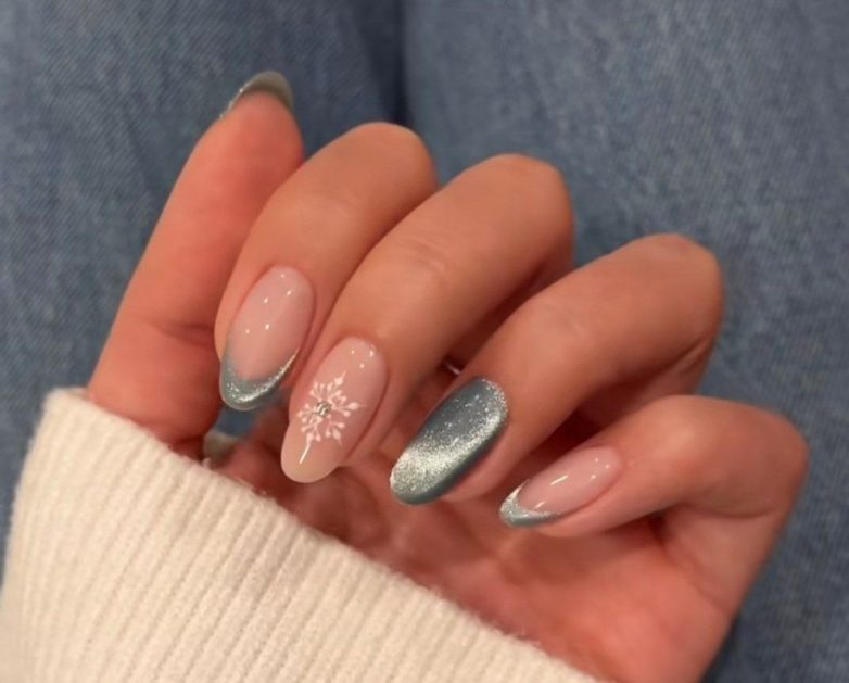 Идеальный зимний дизайн для ценителей минимализма – серебристый магнитный френч.