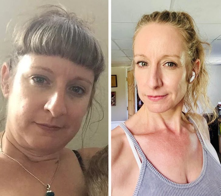 «На первом фото мне 50, а на втором 53. Решила вести здоровый образ жизни. Занимаюсь спортом и слежу за питанием»