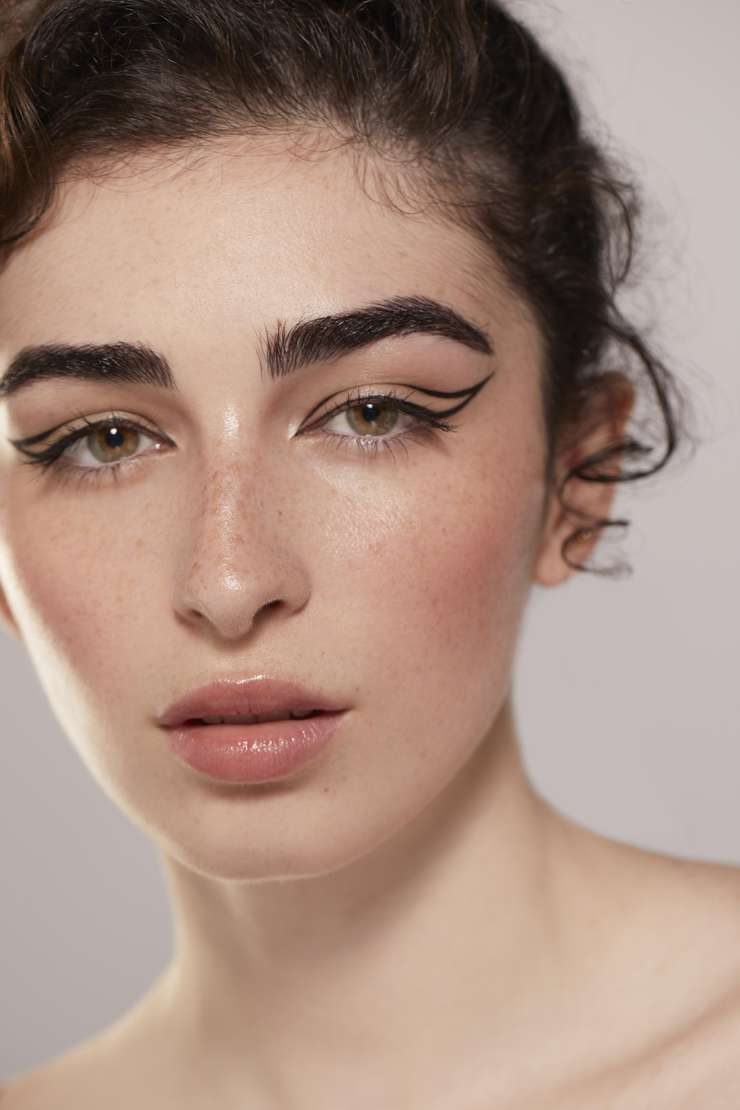 Так было модно в 2010-х. Сейчас на первом месте натуральность. Искусственные ресницы смело заменяйте на ламинирование (визуальное удлинение и завивка), а четкие брови отрастите и придайте им ощущение нетронутости. Также не стоит укладывать волоски на бровях вертикально вверх, это тоже в прошлом, подчеркивает специалист.Широкие, слишком длинные стрелки