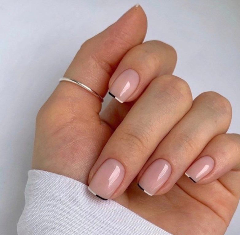 Еще один способ сделать необычный дизайн ногтей, не выходя за рамки эстетики минимализма, – цветной микро-френч. Его главная особенность – тонкая прорисовка свободного края ногтя.