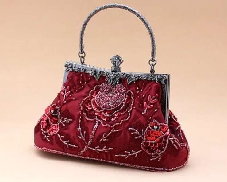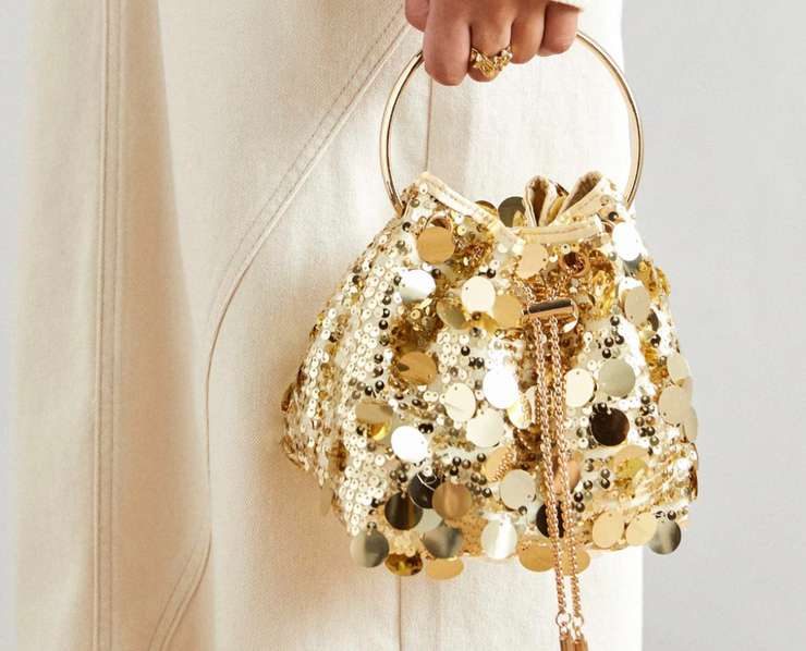 Аж со времен 1920-х такая форма остается фаворитом для торжественных встреч. Стильный мешочек с декором из маленьких бусинок, пайеток или металлической нити создает ощущение движения: свет играет на поверхности, а сумка переливается при каждом шаге. Они замечательно смотрятся с более спокойной одеждой: трикотажным платьем, жакетом грубой вязки или классическим вечерним платьем из бархата, добавляя образу праздничной легкости.