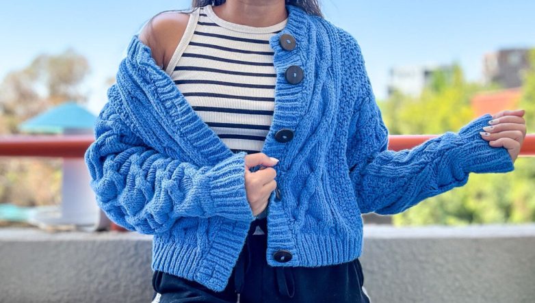 Речь не о рандомной кофте из дачного комода, а о вещи с характером. «Отличительные черты: плотная добротная шерсть или мохер, заметная интересная вязка, крупные пуговицы, свободная посадка и немного „ручного“ настроения. Современная версия держит форму, не вытягивается на локтях и с уважением относится к пропорциям. Длина до талии или до середины бедра, слегка спущенное плечо и чистая линия горловины — в общем, интересный и милый фэшн-ренессанс без ощущения ретро-театра», — говорит эксперт.