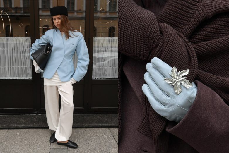 Холодный голубой хорошо отражает эту тенденцию: он выглядит свежо, легко комбинируется и не привязан к одному настроению. Именно поэтому его активно используют и в минималистичных образах, и в более сложных стилистических сочетаниях.