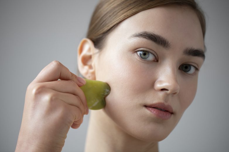Древняя китайская практика. Гуаша (скребок из камня) и нефритовый роллер стимулируют кровообращение, улучшают тонус, разглаживают морщины, снимают мышечное напряжение.