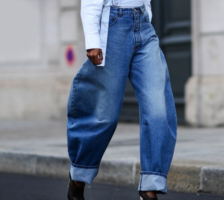 Один из самых модных и характерных вариантов сезона — barrel-leg, то есть джинсы с округлой, слегка бочкообразной формой штанины. Они сужаются к щиколотке и создают выразительный, немного авангардный силуэт. «Такие модели выглядят свежо и модно, особенно в сочетании с короткими жакетами, кроп-топами и лаконичной обувью», — утверждает стилист.