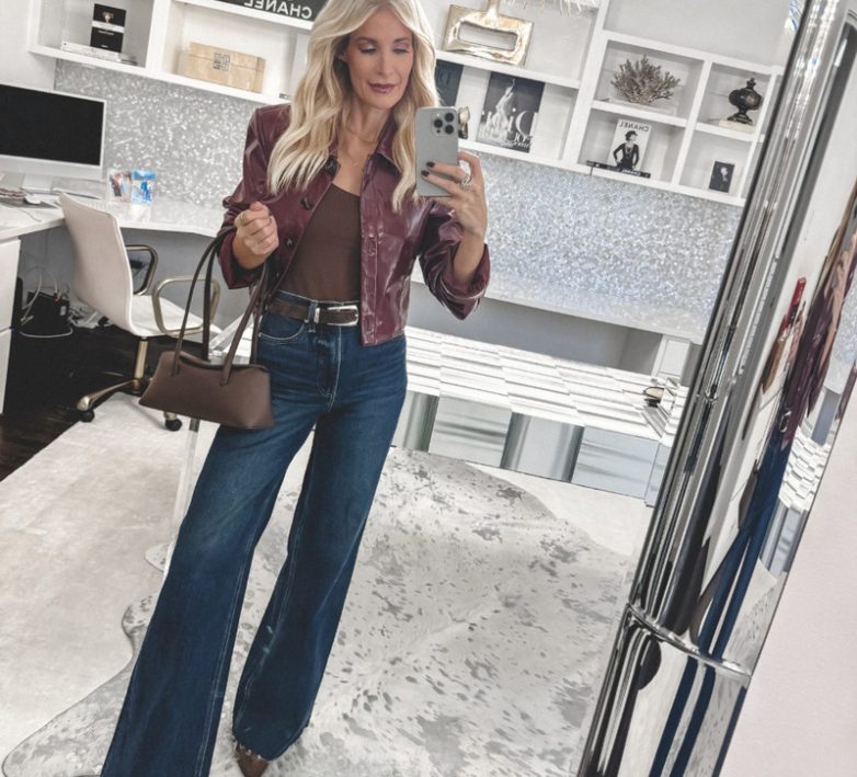 Возвращение джинсовой истории прошлых десятилетий продолжается, но в более утонченной версии. Вместо драматичных расклешенных штанин — умеренный, плавный клеш, который начинается от колена и визуально вытягивает силуэт. Такие джинсы создают эффект длинных ног и хорошо сочетаются с каблуками, ботильонами и платформами. В тренде высокие посадки, темные или средние оттенки денима, аккуратные строчки и минималистичная фурнитура.
