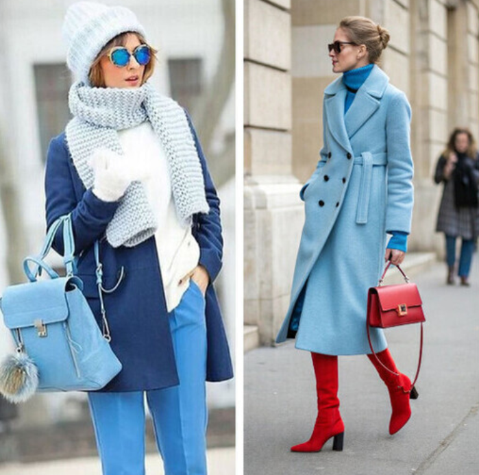 Еще один смелый прием — разные цвета одной температуры и насыщенности внутри образа. Например, пастельно розовый, светло-зеленый и цвет сливочного масла. Стилист: «Или наоборот, собираем все насыщенное — темно-бордовый, кобальтово-синий и изумрудный в одном образе. Даже на самых простых вещах вроде джинс, свитшота и пуховика это смотрится интересно. И вы будете получать комментарии от подруг в духе: „я тоже одета в свитер и джинсы, но почему-то все равно не так круто, как ты!“».