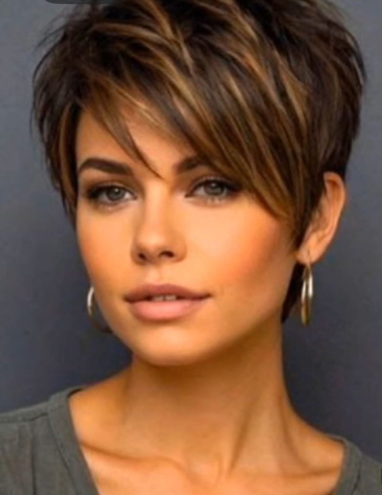 Пикси с челкой-шторкой — самая женственная и смелая стрижка 2026. Короткие виски и затылок, объемная макушка, длинная челка, разделенная посередине или слегка набок. Легкая челка добавляют мягкости и романтики. Тренд на выглядит круто и современно. Ариана Гранде и Рианна часто экспериментируют с подобными вариантами.