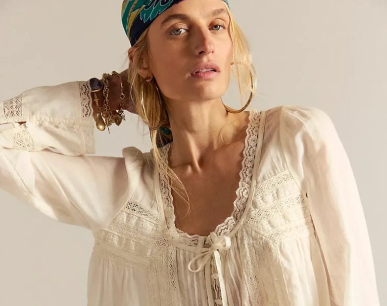 Объемные рукава — один из самых заметных элементов бохо-эстетики этого сезона. Фонарики, расклешенные длинные манжеты, длинные рукава с разрезами, сборки у плеча. «Такая блузка сама по себе становится центром образа, поэтому низ лучше оставлять лаконичным: выбирайте прямые брюки, юбку-карандаш, деним без декора», — советует стилист.