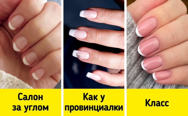 Эксперт элегантности Антонина Хигхам предупреждает, что френч с широким кончиком дешевит образ. Вместо этого лучше выбирать более изящные варианты, где френч выглядит аккуратно.