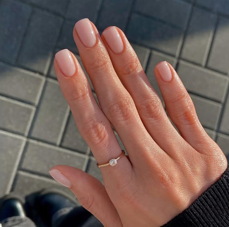 Самый чистый и простой вариант — полупрозрачный молочный оттенок без дизайна. Он создает эффект ухоженных, здоровых ногтей, будто цвет идет изнутри. «Такой маникюр подходит под любой гардероб, длину и форму, не конфликтует с украшениями и всегда выглядит уместно — даже при самом строгом дресс-коде», — объясняет мастер маникюра.