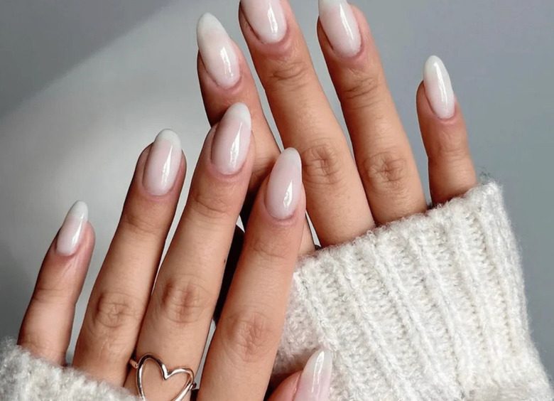 Плавный переход от молочного к розоватому, бежевому или любому мягкому пастельному или даже насыщенному оттенку создает интересный эффект. Градиент выглядит максимально необычно, а в случае с родственными оттенками натурально, удлиняет ногтевую пластину и подходит тем, кто любит сложность, замаскированную под простоту.