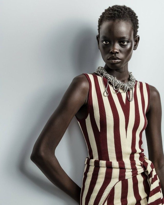 В топе – широкие вертикальные линии, контрастные цветовые сочетания и даже деформированные варианты. Любые варианты хорошо смотрятся в обтягивающих брюках, oversize рубашках и длинных платьях. Но помните, что вертикальная полоска визуально вытягивает силуэт, горизонтальная добавляет динамики.