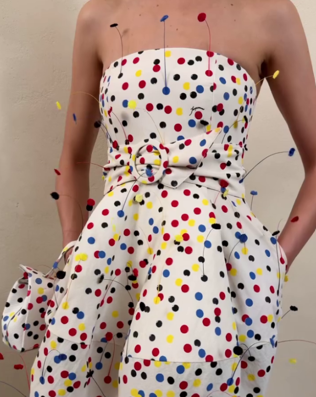 Polka dot не отпускает, но теперь узор становится более маленьким. Никакой игривости и отсылок к ретро – только аккуратная графика, которая сделает образ структурным. Обратите внимание на блузы с бантом, платья миди, юбки трапеции, брючные костюмы из струящихся материалов. Стандарт – черно-белое сочетание, но можно выбрать и более яркие оттенки: они выглядят насыщенно, но не слишком кричаще.