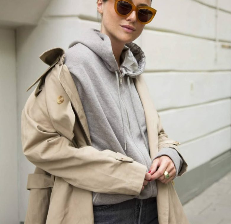 Один из самых устойчивых трендов последних сезонов — смешение формального и расслабленного. «Объемное худи надевают под шерстяное пальто прямого кроя или халатного типа, с тренчем. Важно, чтобы капюшон лежал свободно, а не „боролся“ с воротником. Внизу — прямые брюки, джинсы или даже костюмная двойка. Образ получается одновременно формальный и дерзкий, спокойный и интересный», — объясняет эксперт.