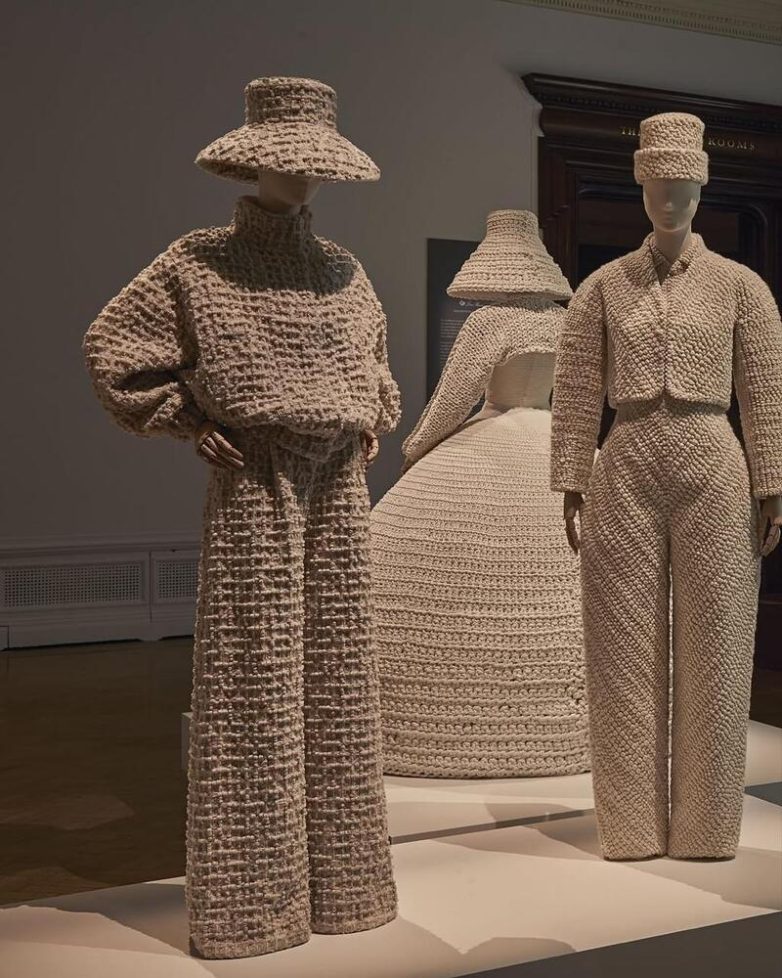 «Триумфальной аркой» вхождения трикотажа в современный быт стала выставка Knitting Beyond the Body («Вязание за пределами тела») в американском музее Kent State University Museum в 2024 году, где были представлены не только трикотажные платья и обувь, но и крупные инсталляции, предметы интерьера, объекты дизайна, технические изделия — от сидений до арт-объектов, связанные из инновационных видов пряжи.