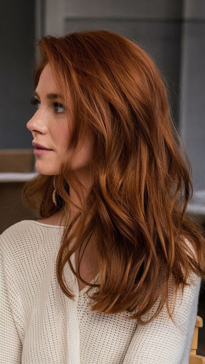 Редкий и сложный цвет, требующий профессионального подхода. В нем сочетаются золотистые, медные и темно-красные нотки, создавая многогранную палитру. Даже небольшие ошибки в подборе пигмента могут сделать оттенок вульгарным или слишком ярким, поэтому окрашивание важно доверять опытному мастеру. Рыжий оттенок придает волосам глубину и насыщенность, освежает лицо и подчеркивает черты. Цвет хорошо смотрится как с теплой, так и с нейтральной кожей, создавая эффект сложного и многослойного тона.