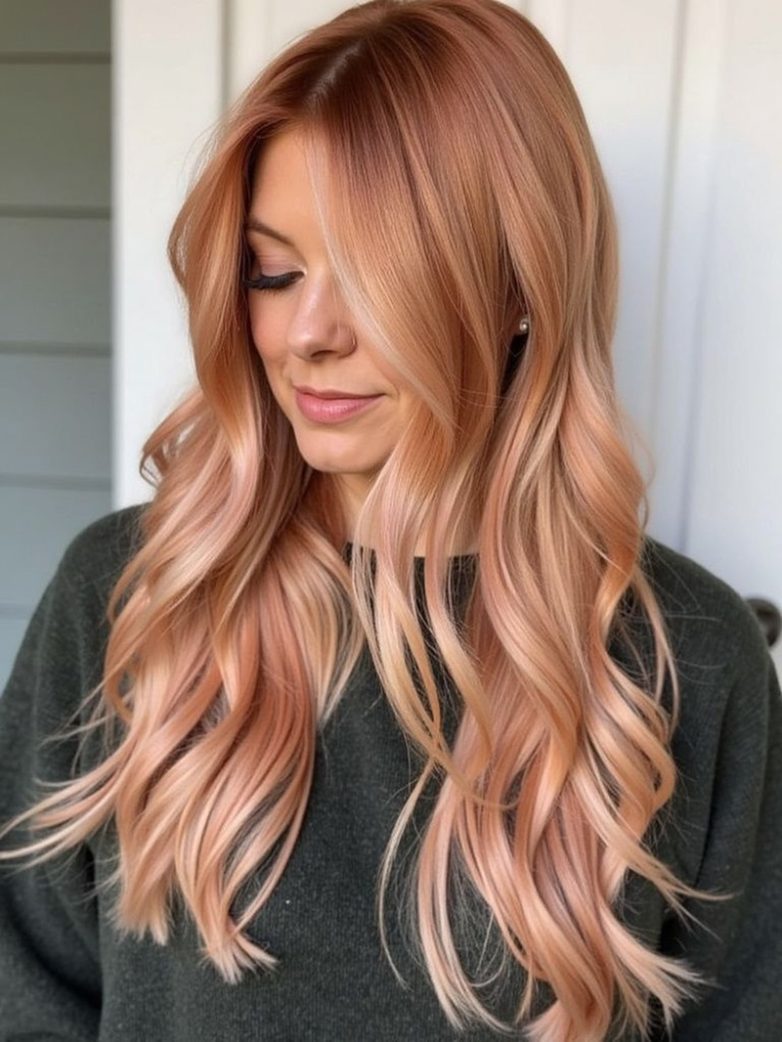 Персиковый оттенок — эффектное окрашивание с акцентом на оранжевые и розовые нотки. Оно создает мягкий, теплый тон, придает лицу свежесть и легкость. Цвет подходит смелым и ярким девушкам, но при этом выглядит дорого, если выполнен с учетом многослойности и плавных переходов. Персиковые волосы выглядят живыми и насыщенными, подчеркивая текстуру прически. Цвет универсален для весенне-летнего периода и отлично гармонирует с натуральной или нейтральной базой волос.
