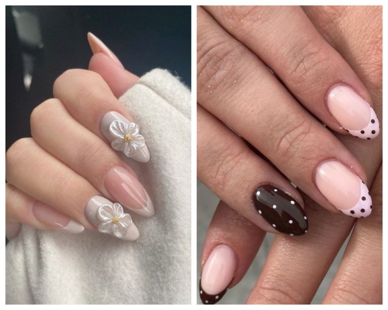 В возвращении принтов главную роль играет горошек. Эксперт: «Чтобы избежать винтажной старомодности, стилисты советуют располагать точки лаконично — у кутикулы или в качестве хаотичной россыпи, комбинируя матовые и глянцевые текстуры». Также популярны тонкие геометрические линии, абстракция и флористические мотивы.3D-декор
