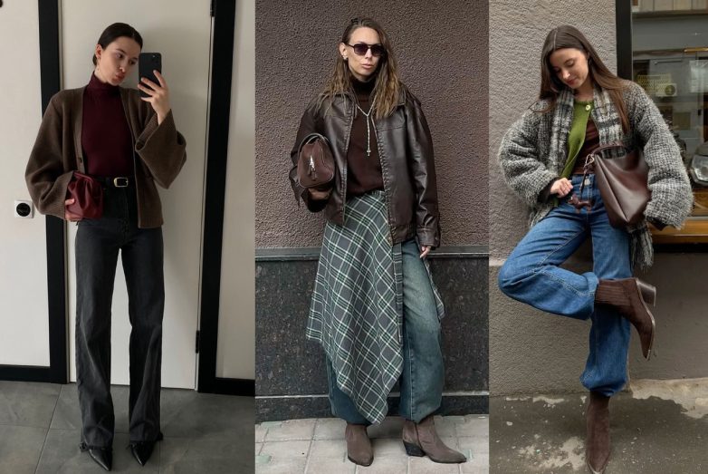 По цвету — черный, шоколадный, темно-коричневый, табачный, бордо или графит: любой из них подойдет к джинсам, миди-юбкам, пальто, тренчу, костюмным брюкам и платью. Перед покупкой мысленно проговорите шесть вещей из своего шкафа, с которыми эти ботинки сочетаются без усилий. Нашли — смело берите.
