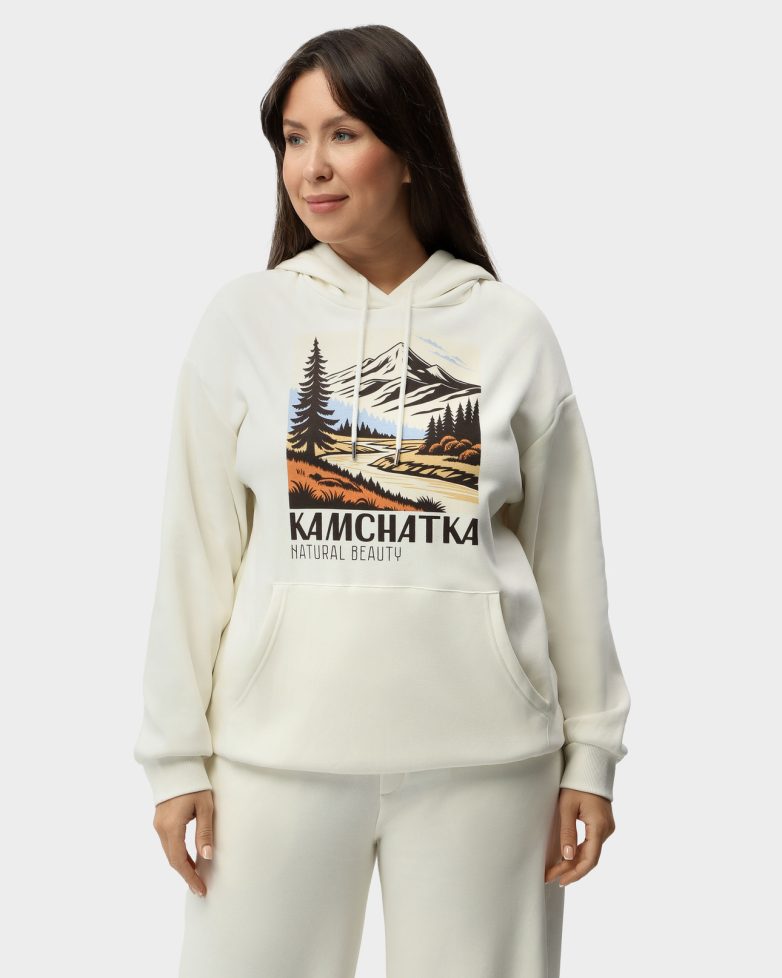 Просто находка! Cпортивный костюм от Sei Tu — идеальный выбор для повседневной носки, дарит уют и тепло в прохладную погоду. Худи и брюки выполнены из мягкого и теплого флиса — материала, который хорошо держит форму, сохраняет тепло и приятно ощущается на теле, обеспечивая комфорт в течение всего дня. Двойной капюшон и вместительный карман-кенгуру посередине надежно уберегут вас от холодного ветра. Изюминка дизайна — контрастный графический принт на груди, изображающий живописный пейзаж Камчатки.